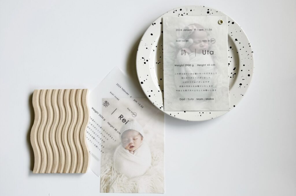 最近では赤ちゃんの写真入りやナチュラルテイストのデザインなど、
